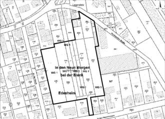 Der Geltungsbereich des für unwirksam erklärten Bebauungsplanes ist auf dem abgedruckten Auszug der Flurkarte auf der Seite XX mit einer Linie stark umrandet.