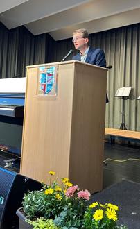 Und weil, wie Albert Schweitzer sagte, keine Zukunft wieder gutzumachen vermag, was in der Gegenwart versäumt wurde, gelte es „unsere Heimat zu bewahren, um unseren kommenden Generationen eine intakte Natur und ein stabiles Klima zu hinterlassen“. Salm nannte beispielhaft das große Projekt Kaltenbach 2.0 – Kulturlandschaft mit Zukunft, die kommunale Wärmeplanung und den dreizügigen Maßnahmenplan, der mithilfe von Förderprogrammen des Kommunalen Investitionsprogramms Klimaschutz und Innovation (KIPKI) umgesetzt wird. Mit dem sechs Millionen teuren Anbau an die Grundschule Edesheim, die mit Edenkoben und Böbingen die dritte Ganztagsschule in der Verbandsgemeinde ist und dem Umbau der 40-Jahre alten Kläranlage Edenkoben mit modernster Spurenelimination und dem ersten Feuerwehrbedarfsplan im Landkreis Südliche Weinstraße nannte der Bürgermeister Projekte, die die VG-Heimat gestalten. Wenn dies auch alles bei sinkenden Steuereinnahmen und schlechterer Finanzausstattung der Kommunen durch Bund und Land geschehe, nur so könne Neues wachsen, ohne Altes zu verdrängen.