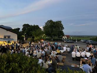 Zu guten Gesprächen und gemeinsamen Austausch lud der Bürgermeister dann gemeinsam mit den Beigeordneten Eberhard Frankmann und Daniel Poth nach dem offiziellen Programm ein. Es war eine tolle Stimmung beim Verbandsgemeindetreff 2025. Die Gäste erzählten, tauschten sich aus, zückten das Handy für den „Point of View“ oder beantworteten die interaktiven Fragen zur Heimat. Es war einfach schön in Burrweiler.