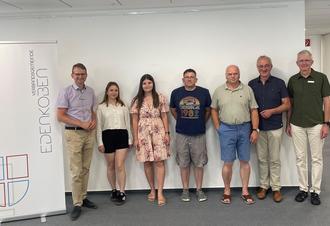 Bürgermeister Daniel Salm und Erster Beigeordneter Eberhard Frankmann gratulierten den drei Absolventen zu ihren, mit guten Ergebnissen, absolvierten Ausbildungen: „Wir ermöglichen unseren Azubis nach der Ausbildung sich im Angestelltenverhältnis zu bewähren und für weitere Aufgaben bei uns zu empfehlen. Hierzu wünschen wir viel Erfolg.“ Zu den Gratulanten zählten auch Büroleiter Jörg Nicklis und Werner Staudt, der Leiter des Abwasserwerkes.