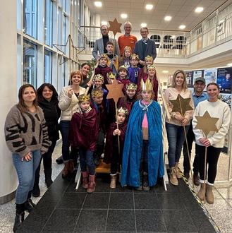 „Es ist Sternsingerzeit, öffnet die Türen weit“ sangen die 13 Sternsinger aus Kleinfischlingen und Großfischlingen mit ihren erwachsenen Begleitern und brachten am 11. Januar 2024 den Segen in die Verbandsgemeindeverwaltung.