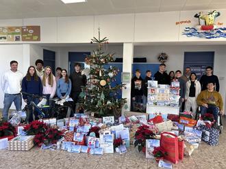 Um die Päckchen für die bedürftigen Kinder und Jugendliche der Tafel Edenkoben abzugeben, hatte Leandro Germann aus der zwölften Klasse etwas ganz Besonderes auf die Beine gestellt: mit einem weihnachtlich geschmückten Bus ging es mit den über 200 Geschenken von der Schule zur Tafel ins Industriegebiet. Leandro Germann hat bei der Queichtal Nahverkehrsgesellschaft ein Praktikum im Rahmen der Fachoberschule absolviert und wird dort auch eine Ausbildung beginnen. Für die Auslieferung der Geschenke hat die Queichtal Nahverkehrsgesellschaft dann einen Bus zur Verfügung gestellt – ein echtes Highlight.
