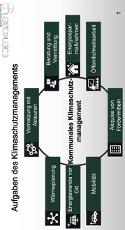 Die Hauptaufgabe des Klimaschutzmanagers ist das Erstellen eines integrierten Klimaschutzkonzeptes für die Verbandsgemeinde. Das soll Potenziale und Szenarien aufzeigen, wie erfolgreicher Klimaschutz in Zukunft aussehen kann. Darauf aufbauend wird ein Maßnahmenkatalog zur Umsetzung dieser Potenziale erarbeitet.