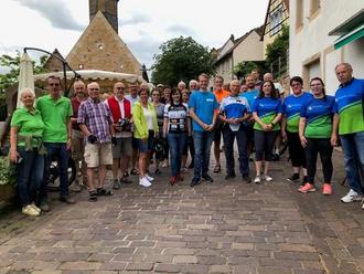 Und gleich zum Start des Wettbewerbs hieß es, gemeinsam Kilometer sammeln. Die Radlerinnen und Radler aus den Verbandsgemeinden Edenkoben, Maikammer und Annweiler machten gemeinsam Strecke. In Gleisweiler am Café Lädl trafen sich insgesamt 30 Teilnehmerinnen und Teilnehmer.