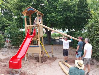 Mit tatkräftiger Unterstützung handwerklich versierter Väter konnte am Samstag, 15. Juli der neue Spiel- und Rutschenturm im Außengelände unserer Kita St. Christophorus in Eigenleistung aufgebaut werden.