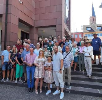 Im Juni durften wir das 70-jährige Bestehen dieser besonderen Verbindung mit einem großen Fest in Edenkoben feiern. Wir freuten uns sehr über den Besuch einer offiziellen Delegation aus Dinkelsbühl, angeführt von Oberbürgermeister Dr. Christoph Hammer und dem Zweiten Bürgermeister Georg Piott. Begleitet wurden sie von mehreren Stadträten, Hauptamtsleiter Thomas Staufinger sowie zahlreichen Dinkelsbühler Bürgerinnen und Bürgern, die gemeinsam in einem Reisebus anreisten. Eine große Freude war uns auch die musikalische Begleitung durch die berühmte Dinkelsbühler Knabenkapelle, die Schwedentänzer der Kinderzeche und die Abordnungen der Feuerwehren Dinkelsbühl und Sinbronn.