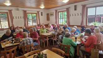 Die Seniorenbeauftragten der Gemeinde Weyher, Alfred Hambsch und Thomas Herrmann, berichten zum Seniorennachmittag im Waldhaus „Drei Buchen“: Am 24. Juli 2025 machten wir uns mit dem Palatina-Bus auf den Weg zum gemütlichen Waldhaus „Drei Buchen“. Hier wurden wir (25 Seniorinnen und Senioren) von Andrea und Frank Bamesberger herzlich empfangen und bestens versorgt. Das gute Pfälzer Essen schmeckte allen wunderbar - und natürlich durfte der selbstgebackene Kuchen nicht fehlen. Besonders der Käsekuchen wurde vielfach gelobt - herrlich locker. Dazu eine Tasse Kaffee - was will man mehr?