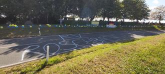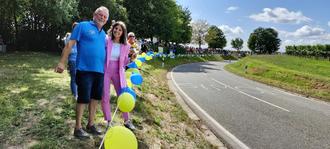 Unzählige Zuschauerinnen und Zuschauer feierten den Radsport entlang der Strecke in der Verbandsgemeinde Edenkoben. Im Rad- und Weinort Roschbach hatte der RV Edelweiß Roschbach am Radfahrerplatz in Richtung Böchingen eine wahre Fankurve entstehen lassen. Gelbe und blaue Luftballons zierten die Straßenränder und mit Kreidefarbe hatten die Verantwortlichen um den Vorsitzenden Patrik Hund den Verein wie auch die Namen der teilnehmenden deutschen Fahrer - Niklas, Max und Simon - auf die Straße geschrieben. Es gab Bänke zum Setzen, gute Stimmung satt und kühle Getränke. Es war ein tolles Fest in Roschbach, bei dem auch der deutsche Radrennfahrer Pascal Ackermann mal kurz vorbei schaute.