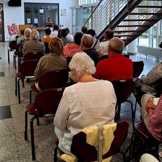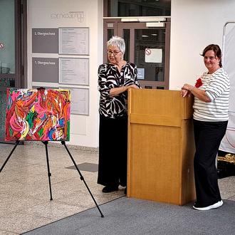 In gelöster Stimmung schwärmten die durchweg begeisterten Besucherinnen und Besucher schließlich aus, um sich ganz der Betrachtung der Bilder, aber auch dem Gespräch mit der Künstlerin hinzugeben.