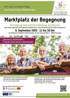 Erstmals hatte das Referat Demografie der Kreisverwaltung SÜW im Jahr 2023 einen Marktplatz der Begegnung zum Thema Älterwerden organisiert. Diesen September findet nun auf vielfachen Wunsch und wegen des großen Andrangs die zweite Auflage statt. Dank geht an den Club Soroptimist International für die Bewirtung, ebenso an die Sparkasse Südpfalz und die Bäckerei Glaser GmbH für die freundliche Unterstützung der Veranstaltung. Die Erlöse werden an Silberstreif und das Haus der Familie in Bad Bergzabern gespendet.