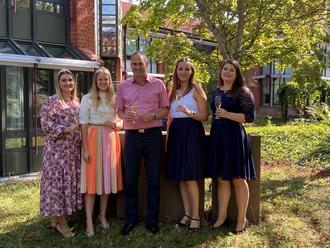 v.l.n.r.: Sophie Grünagel und Maya Bader (Weinprinzessinnen 2021/2022), Landrat Dietmar Seefeldt, Hanna Spies und Laura Götze (Weinprinzessinnen 2022/2023)