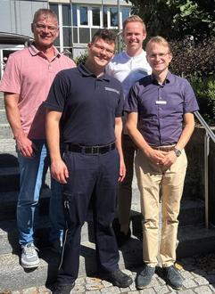 Seit März verstärkt Herr Koch den Fachbereich Bürgerdienste und unterstützt die Kollegen Herr Stahl und Herr Kraft im Vollzug. Nach einem erfolgreich absolvierten Vollzugslehrgang bestellten Bürgermeister Daniel Salm und der Erste Beigeordnete Eberhard Frankmann den 21-Jährigen nun zum Vollzugsbeamten.
