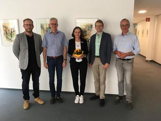 von links: Beigeordneter Daniel Poth, Büroleiter Jörg Nicklis, Regine Müller, Bürgermeister Daniel Salm und Erster Beigeordneter Eberhard Frankmann