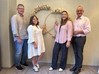 Das Standesamtsteam der Verbandsgemeindeverwaltung Edenkoben auf dem Bild von links: Fachbereichsleiter Klaus Pfaffmann, Standesbeamtin Victoria Wörner, Stellvertretende Standesbeamtin Lisa-Marie Rieth und Erster Beigeordneter Eberhard Frankmann.