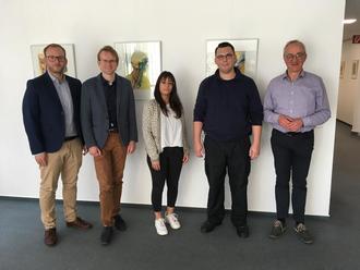 von links: Beigeordneter Daniel Poth, Bürgermeister Daniel Salm, Lisa Matz, Jonas Schönig, Erster Beigeordneter Eberhard Frankmann