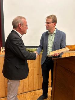 Ernannt zum Ehrenvorsitzenden: Olaf Gouasé (links) mit Bürgermeister Daniel Salm (rechts)