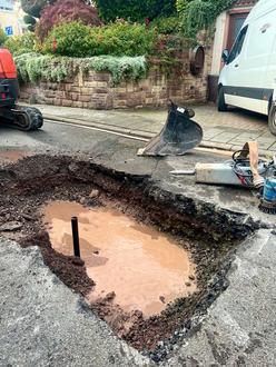Am Sonntag um 14:30 Uhr wurde dem Bereitschaftsdienst des Wasserwerks ein starker Wasseraustritt in der Spitalstraße in Edenkoben gemeldet. Der Bereitschaftsdienst hat vor Ort zunächst die Hauptwasserleitung in diesem Bereich abgestellt. Weil von der Wasserabstellung ca. 90 Haushalte betroffen waren, wurde vor Ort entschieden den Schaden noch gleich am Sonntag zu reparieren. Der Aufbau eines Provisoriums wäre zu aufwändig gewesen. Für die Arbeiten musste auch die Straße kurzfristig gesperrt werden. Als dann später das Tiefbauunternehmen die Schadstelle freigelegt hatte, stellte sich heraus, dass eine Ventilanbohrbrücke gebrochen war. Eine Ventilanbohrbrücke befindet sich auf der Hauptwasserleitung und ist das Verbindungsstück zwischen Hauptleitung und Hausanschluss. Hier kann der Hausanschluss abgestellt werden. In der Straße kann eine solche Ventilanbohrbrücke an den kleinen Schieberdeckeln erkannt werden. Darunter befindet sich das Bediengestänge um den Hausanschluss abzustellen. Nachdem die defekte Anbohrschelle freigelegt war, wurde diese von den Wasserwerkern ersetzt. Danach wurde die Wasserleitung ausgiebig gespült und gegen 21 Uhr war die Wasserversorgung wieder sichergestellt. In den nächsten Tagen kann es durch Luft in der Hausinstallation noch zu milchig verfärbtem Wasser kommen. Das ist harmlos und kann durch Spülen beseitigt werden.