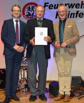 50-jährige Feuerwehrzugehörigkeit feierten Lothar Feig (Altdorf) und Werner Braun (Kleinfischlingen). Für besondere Verdienste um das Feuerwehrwesen wurde den beiden Feuerwehrmännern eine Urkunde verliehen.