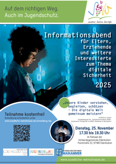 Smartphones, Social Media und Co. gehören längst zum Alltag von Kindern und Jugendlichen. Doch was passiert dort wirklich? Welche Gefahren lauern – und wie können erwachsene Bezugspersonen Kinder schützen und sinnvoll begleiten? Um diese und weitere Fragen geht es bei zwei Informationsabenden unter dem Motto „Unsere Kinder verstehen, begleiten, schützen – Die digitale Welt gemeinsam meistern“. Sie finden am Dienstag, 25. November, 17.30 bis 19.30 Uhr, im Ratssaal der Verbandsgemeindeverwaltung Edenkoben und am Mittwoch, 26. November, 17.30 bis 19.30 Uhr, im Raum „Casino“ der Kreisverwaltung Südliche Weinstraße statt. Die Abende bieten das gleiche Programm an unterschiedlichen Orten. Eingeladen sind alle Eltern, Erziehenden und weiteren Interessierten.