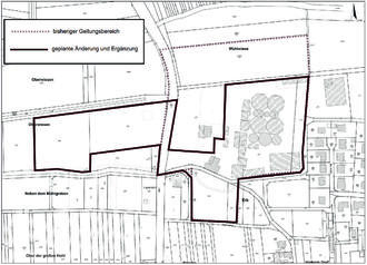 Der Geltungsbereich ist auf dem abgedruckten Auszug der Flurkarte auf der Seite XX mit einer Linie stark umrandet.