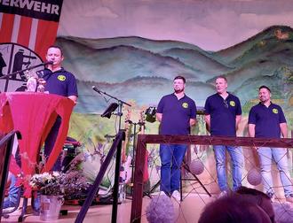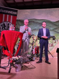 Wehrführer Steffen Schwarztrauber, die Stellvertreter Lennart Steigelmann und Michael Wolff, wie auch der Vorsitzende des Fördervereins Thomas Gries, hießen die Gäste herzlich willkommen. Neben dem eigentlichen Feuerwehrdienst habe die großartige Mannschaft die Turnhalle in eine Feierlocation gewandelt. Sein Willkommensgruß galt Bürgermeister Daniel Salm, dem Ersten Beigeordneten und Brandschutzdezernenten Eberhard Frankmann, dem Brand- und Katastrophenschutzinspekteur Jens Thiele sowie der Ortsbürgermeisterin Ute Schweig (Hainfeld), den Ortsbürgermeistern Christian Kocher (Edesheim), Peter Henrich (Flemlingen), Marco Brutscher (Roschbach) und Uwe Winter (Rhodt).