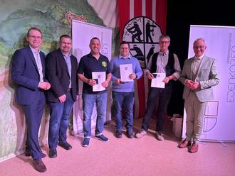 Mit der Urkunde für ihre zehnjährige Zugehörigkeit bei der Feuerwehr geehrt wurden Patrick Bumb (Flemlingen), Pascal Butendeich (Gleisweiler) und Tobias Zöller (Gommersheim).