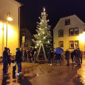 Trotz kalt-nassem Novemberwetter fanden sich zahlreiche Bürgerinnen und Bürger zum ersten Schmücken unseres Weihnachtsbaums am DGH ein. Insbesondere die Kinder freuten sich, ihren teilweise selbstgebastelten Schmuck anzubringen. Mit Unterstützung der Feuerwehr konnten auch die höher gelegenen Äste erreicht und verziert werden. Im Anschluss wärmten Glühwein und Punsch sowie heiße Würstchen im Feuerwehrhaus auf. Bei netten Gesprächen konnte die Adventswoche gemütlich eingeläutet werden. Ein herzlicher Dank geht an die zahlreichen helfenden Hände und die Freiwillige Feuerwehr. Besonders gefreut hat uns die Spende der Würstchen von der wiedereröffneten Metzgerei Staub und die Brötchenspende der Bäckerei Görtz. Vielen Dank.