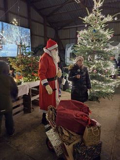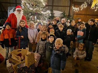In diesem Jahr fand unsere Nikolausveranstaltung erstmals im Tannenhof bei Larissa und Andreas Kullmann statt – und der neue Ort hätte stimmungsvoller kaum sein können. Der Hof war wundervoll geschmückt, mit einer großen Leinwand voller Schneebilder, einer riesengroßen, mit glänzenden Weihnachtskugeln geschmückten Tanne sowie einer warmen, gemütlichen Feuerschale, an der sich Groß und Klein versammeln konnten.