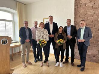 Neuer Schwung im Standesamt: Victoria Wörner hat im Juni die Nachfolge vom langjährigen Standesbeamten übernommen. In einem modernen und zugänglichen Standesamt sollen sich „alle Bürgerinnen und Bürger in allen Bereichen – ob Geburt, Eheschließung oder Sterbefall – gut aufgehoben fühlen. Es gibt auch ein erweitertes Angebot an Trauungen, mit im Team der Standesbeamten: Lisa-Marie Rieth, Fachbereichsleiter Klaus Pfaffmann und Erster Beigeordneter Eberhard Frankmann.