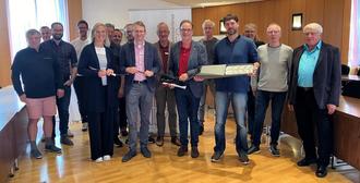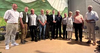 Alexander Schweitzer ist zu Gast in Gommersheim. Mit dabei hatte der damalige Minister für Arbeit, Soziales, Transformation und Digitalisierung des Landes Rheinland-Pfalz und jetzige Ministerpräsident von Rheinland-Pfalz einen Bewilligungsbescheid aus dem Dorferneuerungsprogramm 2024 für die Beratung privater Dorferneuerungsmaßnahmen in Höhe von 4.000 Euro.