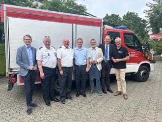 Die Feuerwehr Großfischlingen begrüßt offiziell das neue Tragkraftspritzenfahrzeug-Wasser (TSF-W). Das 146.600 Euro teure Fahrzeug kann unter anderem sechs Feuerwehrangehörige, 750 Liter Wasser und umfangreiche Ausrüstungsgegenstände transportieren.