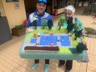 Freibad Edesheim kunstvoll in Szene gesetzt: Luise Franger, seit Jahren in der Gruppe der frühschwimmenden Frauen, hat in liebevoller Kleinarbeit über die Wintermonate das Freibad Edesheim gehäkelt. (Bild: Verbandsgemeindeverwaltung Edenkoben)