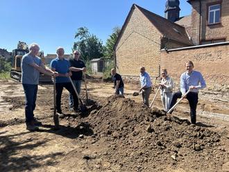 Die Bauarbeiten im Pfarrhof in Hainfeld haben begonnen. Im Obergeschoss entsteht ein neuer Raum für die Bücherei, während im Untergeschoss die Sanitäreinrichtungen vollständig erneuert werden.