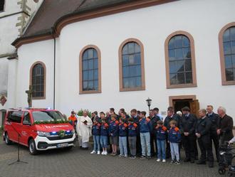 Seit rund 25 Jahren feiert die Venninger Feuerwehrfamilie den Gottesdienst zu Ehren des Heiligen Florian am 4. Mai. So auch 2025, jedoch mit einer Besonderheit. Pfarrer Peter Nirmaier segnet im Anschluss an den Gottesdienst das von der Verbandsgemeinde übergebene neue Mannschaftstransportfahrzeug. (Bild: Feuerwehr Venningen)