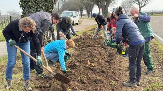 Mitglieder des AK Umwelt beim Setzen der Tulpenzwiebeln
