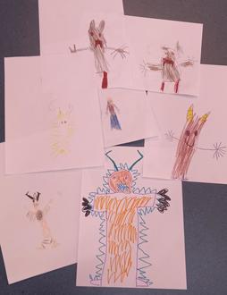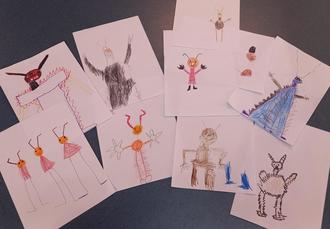 Die Sterntaler, die wollten konnten eine Maske aufsetzten. Sie hatten viel Spaß, fanden es schön und auch ein bisschen grusselig.