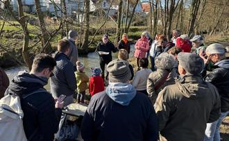 Am vergangenen Sonntag informierte Matthias Möbs, Biberrevierverantwortlicher aus Ober-Mörlen, zahlreiche interessierte Bürgerinnen und Bürger bei schönem Wetter über die Entwicklungen an der Usa und Fauerbach. Der hohe Wasserstand der Usa hat in den letzten Wochen die Dämme der Biber zwischen Ludwigstraße und Hüftersheimer Mühle zerstört. Die Biberburg auf Höhe Adam-Geck-Straße Ecke Limesstraße liegt aktuell trocken und konnte gut besichtigt werden.