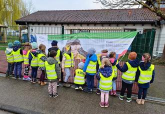 Die Sterntaler vor dem Verkehrswacht-Banner