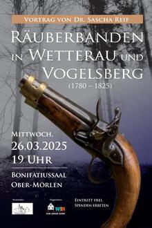 Organisierte Räuberbanden - ja, es gab sie damals schon! Ein Thema mit Gänsehautfaktor und auch heute noch aktuell! Wie war das vor über 200 Jahren, als organisierte Banden nachts Bauernhöfe, Kirchen und sogar ganze Dörfer ausraubten? Was steckt hinter dem alten Flurnamen „Am Diebsweg“ in Ober-Mörlen? War das womöglich einst eine Räuberroute? Warum finden wir in Dialekten Begriffe aus der „Gaunersprache“? War die Bevölkerung den plündernden Banden hilflos ausgeliefert?