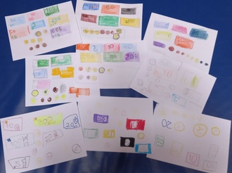 Von den Sterntalern bei der Nachbereitung gezeichnete Münzen und Geldscheine
