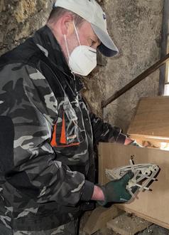 Frank Jung und Hans-Josef Rauch betreuen seit über 10 Jahren während der Brutsaison die Nistkästen für die Turmfalken und Schleiereulen im Glockenturm der St.-Remigius-Kirche. Bislang haben die Vögel noch keine Eier gelegt. Behindert werden sie durch umtriebige Dohlen, die auch die Nistkästen für sich nutzen wollen und eifrig Nistmaterial eintragen. Meistens besteht das aus dürrem Reisig von Laubbäumen aus der unmittelbaren Umgebung. Aber auch Wäscheklammern, leere Bonbontüten und Plastikkordel halten die Vögel für geeignet. Neu und kurios ist, dass die Dohlen auch Aluminium sammeln. „Hupsi“ hat mindestens zehn Teile einer alten Fernsehempfangsantenne aus dem Nistkasten entfernt (siehe Foto). Mit den Nestbaukünsten der Dohlen ist es nicht weit her, aber auch die von uns geförderten Falken und Eulen geben sich keine große Mühe. Würden wir ihnen nicht ein Bett aus Einstreu anbieten, das jedes Jahr erneuert wird, so bestünden die Nester aus wenigen dürren Ästchen, die vor allen Dingen verhindern sollen, dass die Eier wegrollen. Nun warten wir gespannt auf die erste Eiablage.