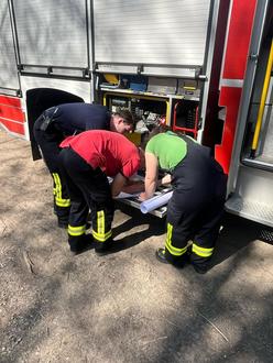 Von 09:00 Uhr bis 14:12 Uhr fand eine Ausbildung aus dem Bereich des Katastrophenschutzes statt. Bei einer Koordinatenfahrt durch die Gemarkung mussten die Einsatzkräfte anhand von topografischen Karten und per Funk übermittelten Koordinaten markante Punkte finden und sich im freien Feld sowie innerhalb der Ortsbebauung orientieren und zurechtfinden.