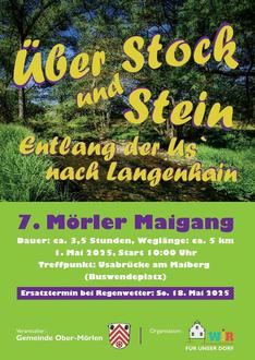 Die Gemeinde Ober-Mörlen als Veranstalter und die organisierende Initiative „Wir für unser Dorf“ freuen sich auf viele interessierte Maigänger. Zu empfehlen sind festes Schuhwerk und, je nach Wetter, ein geeigneter Sonnenschutz. Falls es am Maifeiertag in Strömen regnen sollte, wird der Maigang am Sonntag, 18. Mai, nachgeholt. Im Zweifel kann man sich Gewissheit verschaffen am Veranstaltungstag ab 9 Uhr über die Wetterhotline unter der Mobilnummer 0160-2435992.