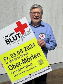 Der Vorsitzende der DRK Ortsvereinigung Ober-Mörlen, Helmut Witmann, bittet um Ihre Blutspende bei dem nächsten Blutspendetermin in Ober-Mörlen. Zur Unterstützung der Blutentnahmeteams des DRK Blutspendedienstes würde sich die DRK Ortsvereinigung über Helferinnen und Helfer freuen, die ehrenamtlich Aufgabenstellungen bei der Terminvorbereitung und Durchführung übernehmen. Hierzu sind keine besonderen Vorkenntnisse erforderlich. Interessierte sprechen bitte an Herrn Dietmar Wittmann (Tel. 7898), der die Aufgabenstellungen und zeitlichen Aufwände gerne erläutert.