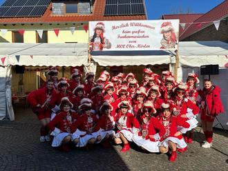 Nach monatelanger Vorbereitung und vielen Arbeitsstunden erwartete uns für den Tag des Fassenachtsumzugs nichts weniger als strahlender Sonnenschein! Bei bestem Wetter versammelten sich die Mittleren Funken, de Gr0ße Tanzgarde, der Elferrat, die Roten Husaren und ein paar weitere MCC-Mitglieder auf dem Kirchplatz, um die in dieser Saison wichtigsten Personen noch vor Beginn des Zuges abzuholen und nochmals gebührend zu feiern: das Große Funkenmariechen Maike, den Kinderelferratspräsidenten Luke und das Kleine Funkenmariechen Marlene. An dieser Stelle sei Euch Dreien und Euren Familien nochmals herzlichst für die Gastfreundschaft gedankt!