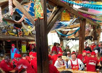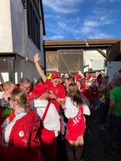 Für Maike und die Funkenschar ging es sodann strammen Schrittes weiter in die Waldlust, die zum Frühschoppen ihre Tore öffnete und insbesondere von vielen Mitgliedern des MCC aufgesucht wurde, um nochmals bei herrlichstem Sonnenschein ordentlich zu feiern. Bereits frühzeitig waren alle Sitzplätze vergeben, doch wen hält es bei ordentlicher Partymusik schon auf der Bank?! Schnell war klar, dass es auf die Tanzfläche gehen musste, um nochmals ordentlich zu feiern, bevor es in etwas mehr als 24 Stunden schon heißen musste „Tschüss, geliebte Fassenacht“ …