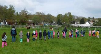 Ehe die Sterntaler von der Weide gingen wurde noch ein Gruppenbild mit einem Teil der Tiere gemacht. Dann ging es zurück zum Treffpunkt, an dem die Eltern schon warteten und es ging mit sehr vielen tollen Eindrücken zurück in die Kita.