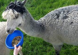 Fütterung der Alpakas und Lams aus der „Müslischale“