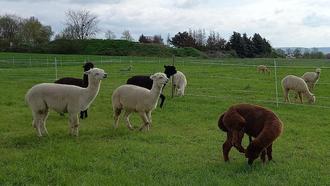 In der Herde von Corinna Heyd sind 4 Lamas und 12 „Alpaka-Jungs“ auf dieser Weide und weiter 7 „Alpaka-Mädels“ am Hof. Lamas und Alpakas sind Herdentiere und die „Mädels“ und „Jungs“ werden in getrennten Herden gehalten.
