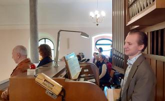 Dirigent Witold Tuszynski an der Pfeiffenorgel, mit dabei der Singkreis aus Nieder-Mörlen, Fotoarchiv Kai Schraub.